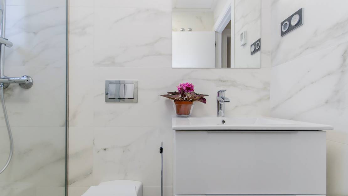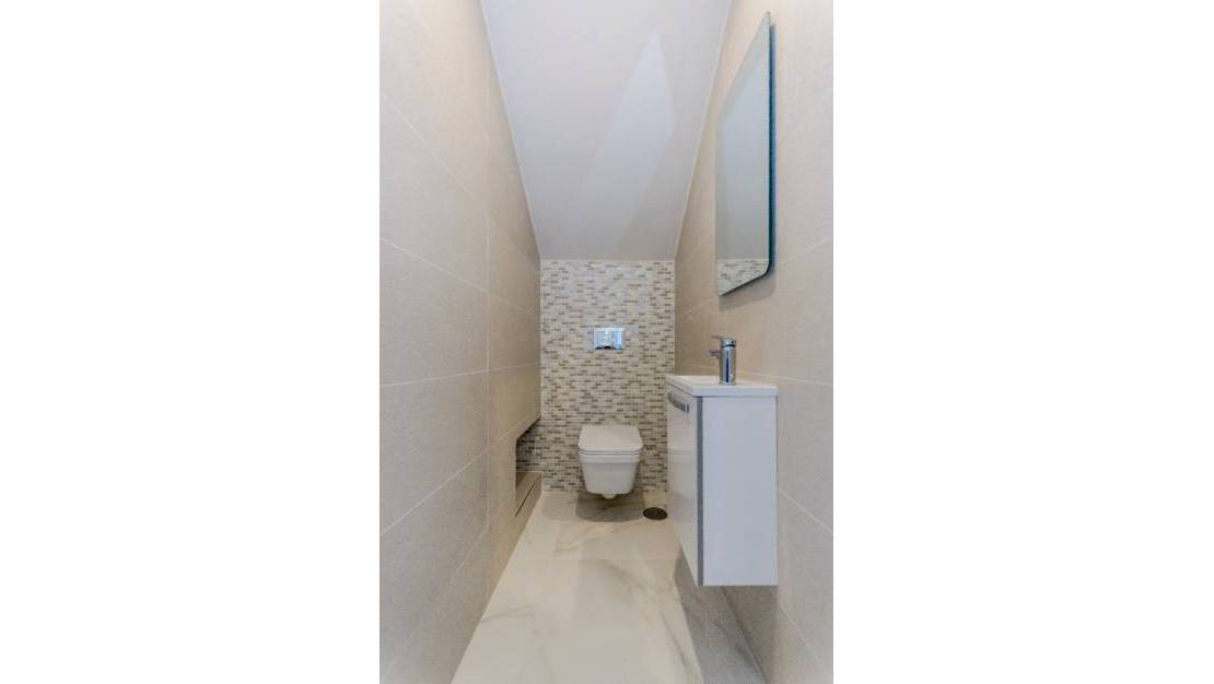 Satılık bu mülk 134 m2 inşaat alanı, bir çift kişilik oda ve 2 sade oda, 2 banyo, sadece mutfak mobilyası, güneydoğu yönüne sahiptir.