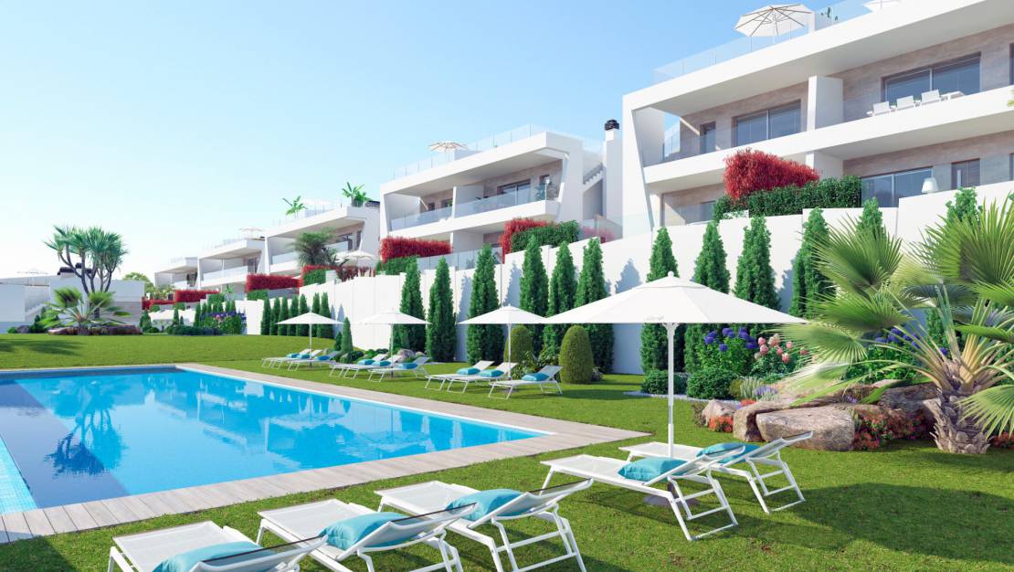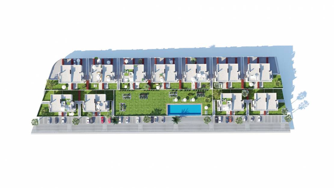 Evler dörtlü gruplar halinde yer alıyor. İkisi özel bahçeli zemin katta , diğer ikisi de harika bir solaryum ile en üst katta . Tüm dairelerimiz özel otopark, ortak havuz, yeşil alanlar ve deniz manzarasına sahiptir.