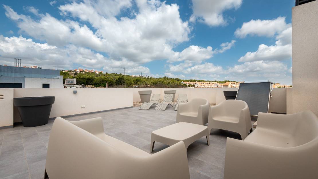 San Miguel de Salinas'ta, La Canada - Costa Blanca South yerleşim bölgesinde satılık solaryumlu premium apartman kompleksi. Evler, geleneksel unsurlar ve karakterle birleşen seçkin çağdaş tasarımları ile karakterize edilir .