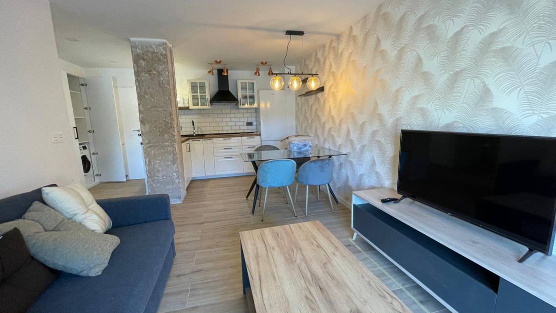 Her ikisi de TV'li 2 çift kişilik yatak odası, geniş bir terasa sahip 2 banyo, daire genelinde klima bulunan güzel daire, harika bir zevkle dekore edilmiştir, gerekli tüm aksesuar ve aletlerle donatılmış mutfak.
