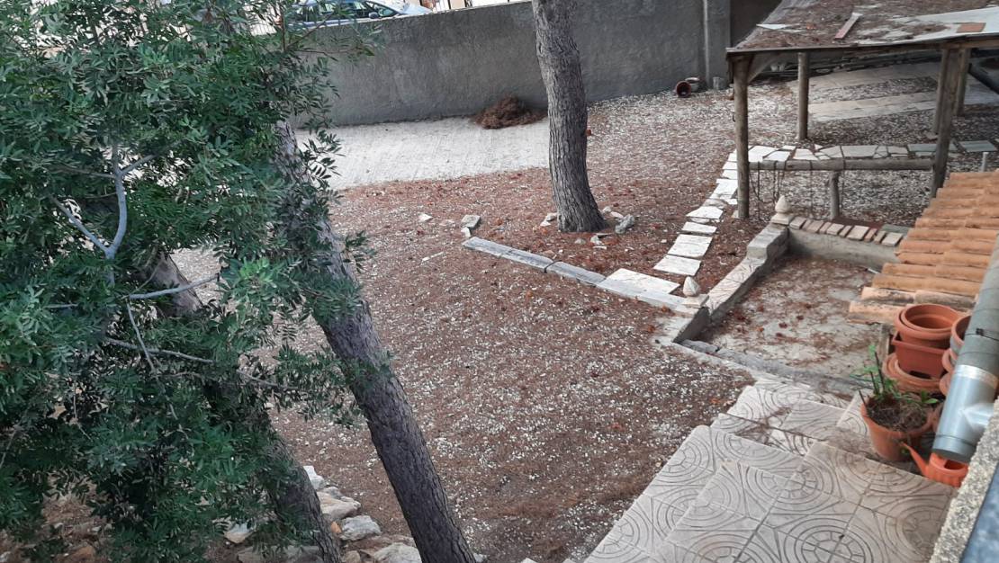 Çam ağaçlarıyla kaplı 800 m² arsa, birkaç araçlık alan, güzel bir özel havuz ve barbekü alanı.