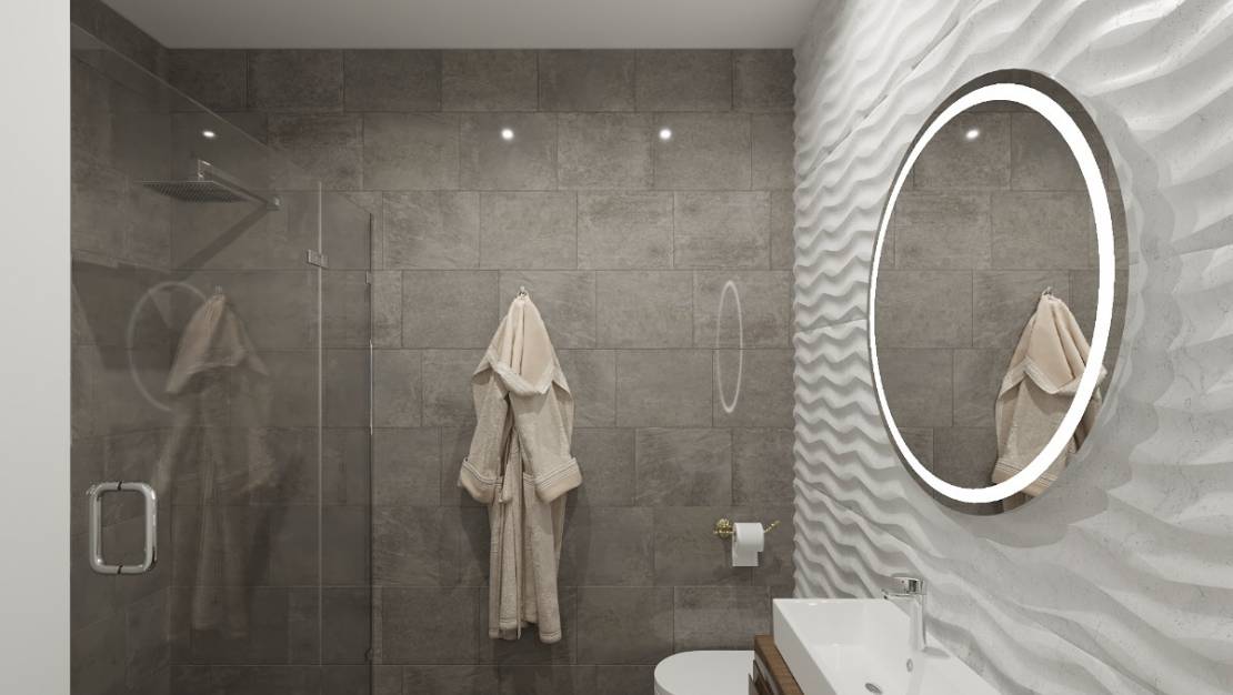 Bu dairede 3 yatak odası ve birinci katta 3 banyo bulunmaktadır. Konut kompleksi, bir, iki ve üç yatak odalı 28 modern daireden oluşmaktadır. Kompleks beş kata yayılmıştır ve geleneksel tapas barları, mağazalar, açık hava kafeleri, bankalar, uluslararası restoranlar ve bu popüler tatil ve yerleşim bölgesini zenginleştiren daha birçok yerel hizmetin bulunduğu ticari bölgenin yanında yer almaktadır. Konut, yüksek kaliteli malzemeler, özel yeraltı otoparkı, depo odaları, tuzlu suyla ısıtılan ortak havuz, Fin saunası, spor salonu ve ortak alanlar sunmaktadır.