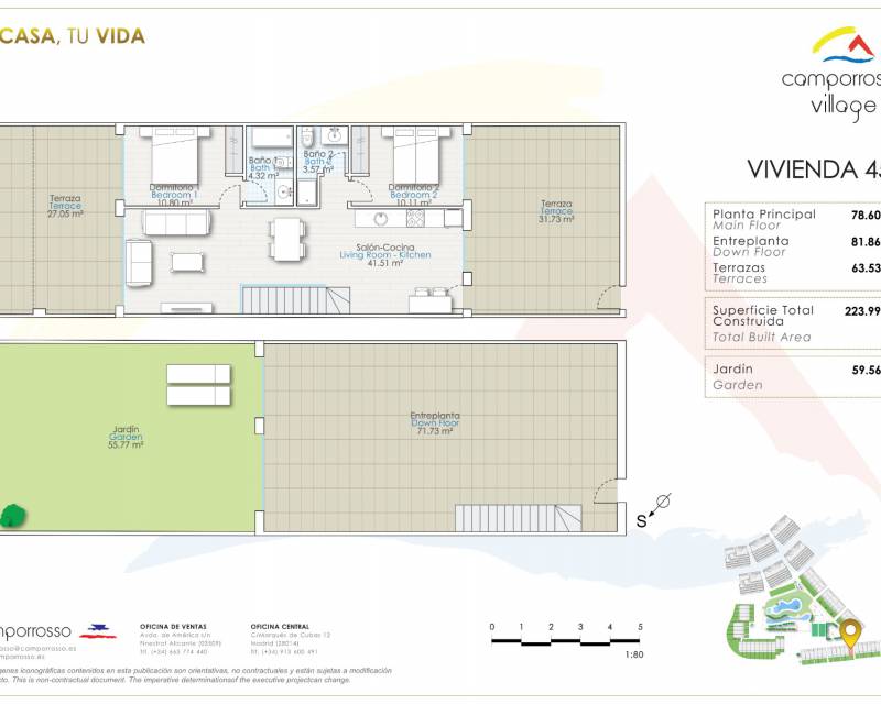 Camporrosso Village, Sierra Cortina altındaki tüm eğlence kompleksinin Avenida de América ekseninde yer almaktadır: Asía Bahçeleri Otel, Golf Sahaları, Villa Aitana Hotel, Terra Mitica Tema Parkı ... Cadde doğrudan AP çıkışına bağlıdır. 7. Bölgenin tüm ticari bölgesi sadece birkaç metre aşağıdadır: CC La Marina, Carrefour, Leroy Merlin, Mercadona, Decathlon, vb. Ve bunun yanında La Costa Blanca'nın en güçlü turizm merkezinin tüm hizmetleri.