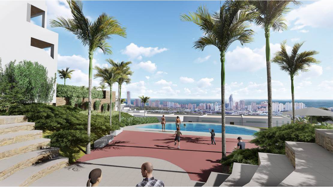 Projenin istisnai bir ortak alanı var: yüzme havuzları, paddle tenis kortları, Social Beach Club, spor salonu, soyunma odaları ... Hepsi etkileyici doğal taş duvarlarla farklı seviyelerde yapılandırılmış. Bu ortak eğlence alanlarının boyutu, yaklaşık 50.000 m2'lik bir arsa olarak anlaşılmaktadır.