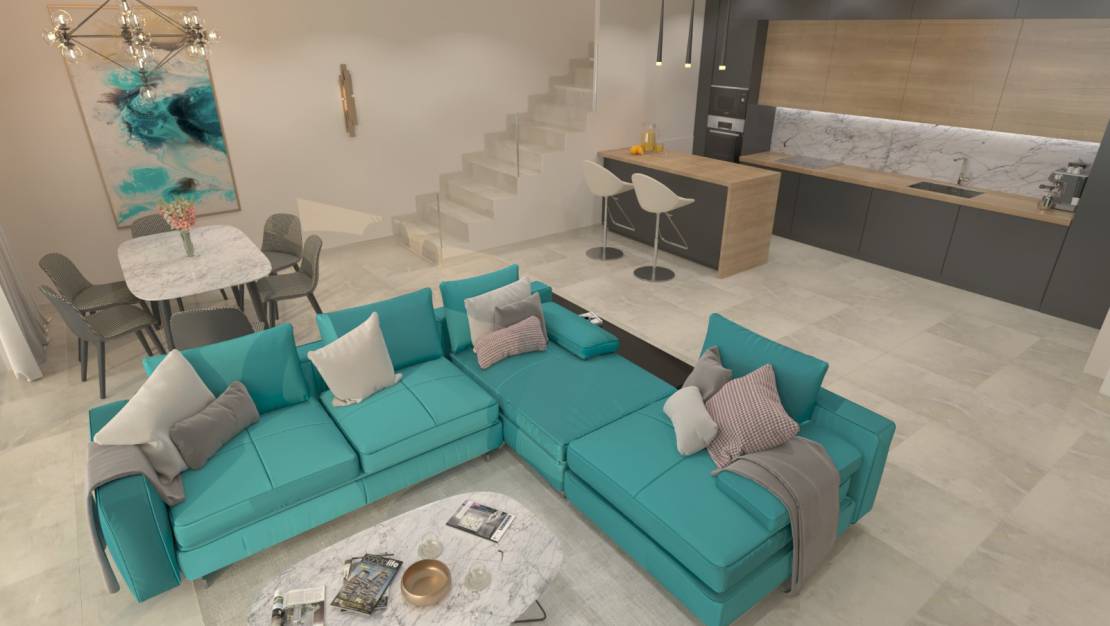 Bu bağlamda, proje deniz, ışık ve düz çizgiler, parlak renkli yüzeyler, büyük pencerelerden oluşan özel bir tasarımla birleşiyor ... Tasarım, tepede bir havuza sahip olma seçeneği gibi diğer farklı yaratıcı nüansları da ekliyor. Solaryum katı. Ya da etkileyici doğal taş duvarlara dayanan seviyeler oyunu.