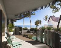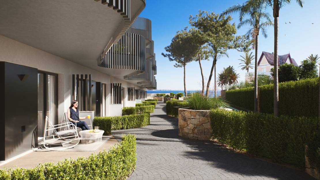 Santiago de La Ribera'da muhteşem manzaralı ve plaja doğrudan erişime sahip bahçeli zemin kattaki apartmanlardan veya büyük solaryumlu üst kattan oluşan yeni inşa edilmiş kentleşme.