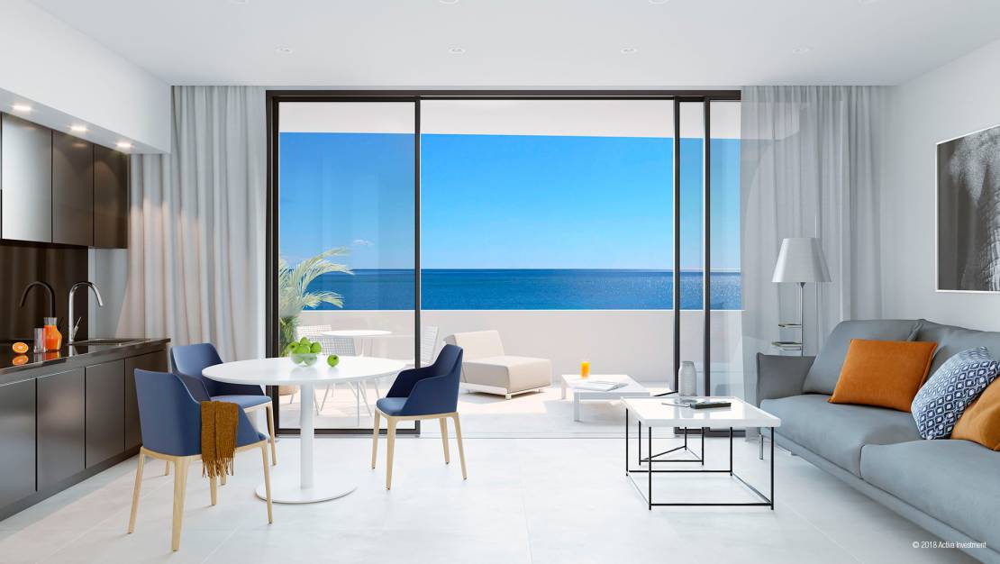 2 yatak odası ve 2 banyolu daireler 65 m²'dir ve açık mutfağa sahip bir oturma odası ve doğal ışığın girmesine izin veren büyük pencerelerden oluşmaktadır.