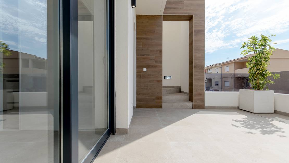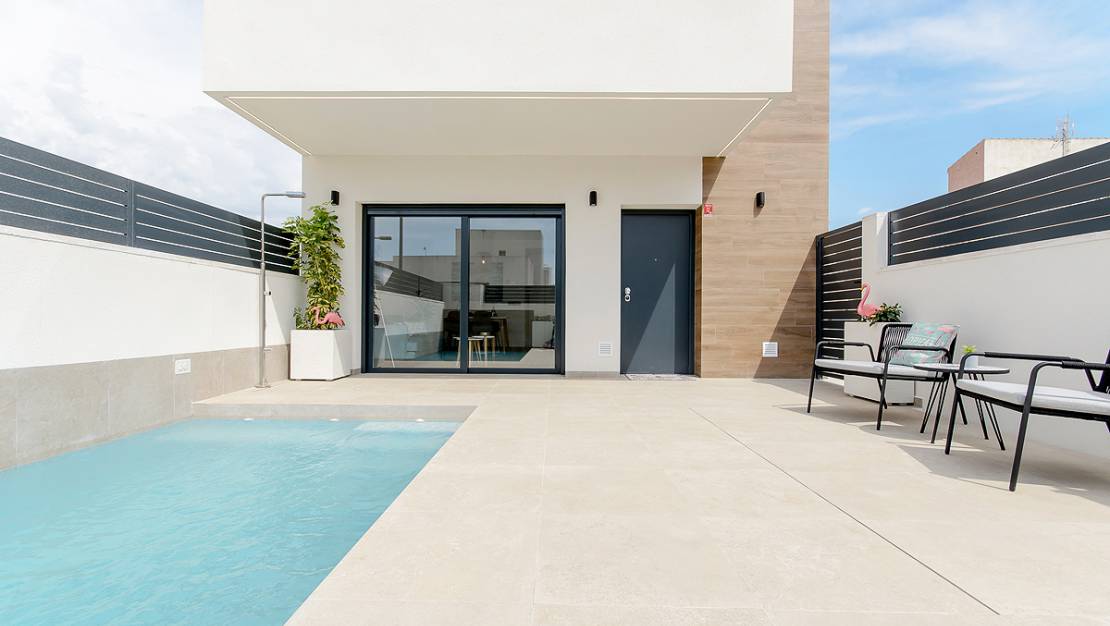 Benijófar'da (güney Alicante) satılık özel havuzlu, 3 yatak odası ve 2 banyodan oluşan, ferah ve modern bir oturma-yemek odası ve mutfak, veranda, geniş teras, kapalı sundurma ve otopark ile yeni inşa edilmiş lüks şehir evi . İsteğe bağlı tavan.