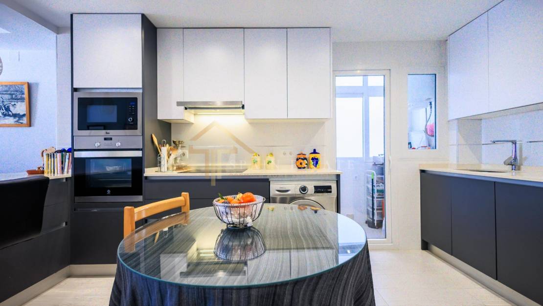 Bu aydınlık ve tamamen yenilenmiş üç yatak odalı daire, asansörlü bir binanın dördüncü katında yer almakta olup Akdeniz'in panoramik manzarasını sunmaktadır. Torrevieja, Costa Blanca'nın en popüler plajlarından biri olan Playa del Cura'nın hemen üzerinde bulunan bu tesis, İspanyol Akdeniz'inin en çekici bölgelerinden birinde kıyı yaşamının keyfini çıkarmak için olağanüstü bir fırsat sunmaktadır.