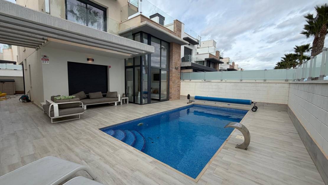 Orihuela Costa'da, Lomas de Cabo Roig'de kiralık olarak sunulan bu muhteşem modern villa, Costa Blanca'nın güzelliğinde konfor, zarafet ve ambiyansın mükemmel bir karışımını sunmaktadır. Villada, geniş ve aydınlık oturma odasına sorunsuz bir şekilde bağlanan, tam donanımlı açık mutfağa sahip konforlu ve şık bir oturma odası bulunmaktadır. Geniş teras, güneşli günlerde dinlenmek için idealdir.